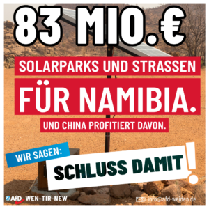 In Namibia sehen wir ein erschreckendes Beispiel: Während Deutschland das Geld bereitstellt, übernehmen chinesische Unternehmen den Bau und schöpfen Gewinne ab.