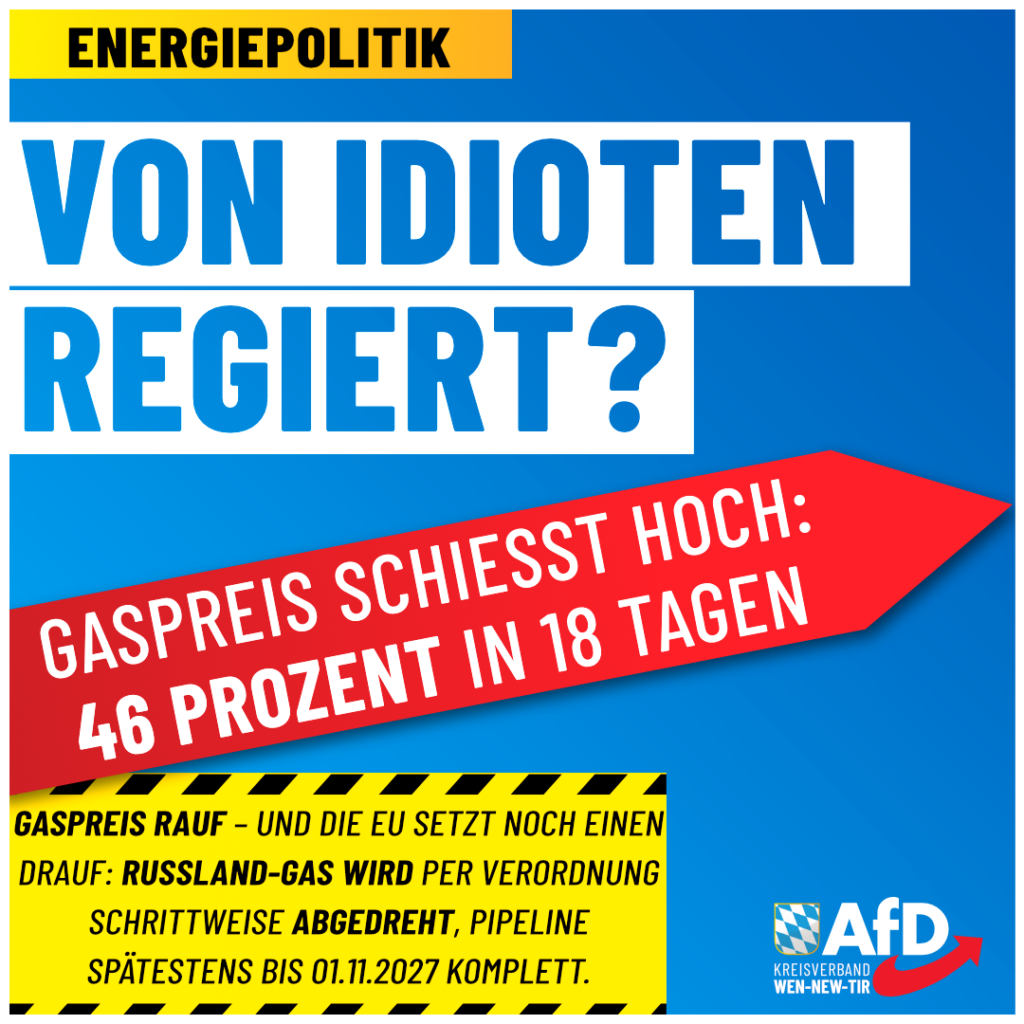 Gaspreis rauf – und die EU setzt noch einen drauf: Russland-Gas wird per Verordnung schrittweise abgedreht, Pipeline spätestens bis 01.11.2027 komplett, inklusive langfristiger Verträge. Ergebnis: weniger Bezugsoptionen, mehr Marktstress, höhere […]