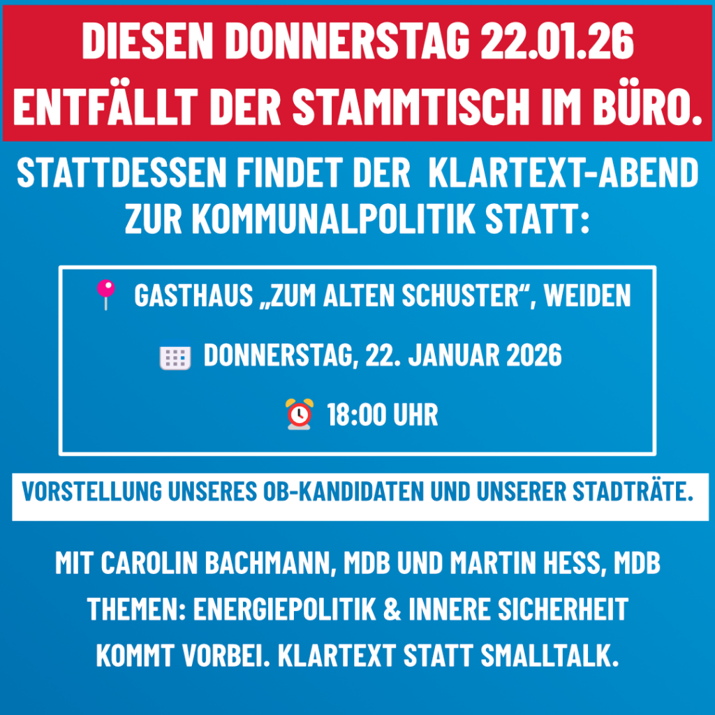 Mehr lesenStammtisch am 22.01.2026 entfällt – Stattdessen Veranstaltung beim alten Schuster