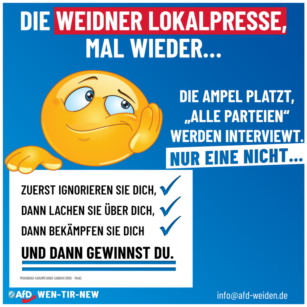 🚨 Wieder einmal zeigt sich die „objektive“ Berichterstattung der Weidner Lokalpresse… 🚨 Von wegen umfassende und objektive Berichterstattung. Die Ampel platzt und alle Parteien bis auf die AfD werden interviewt. […]
