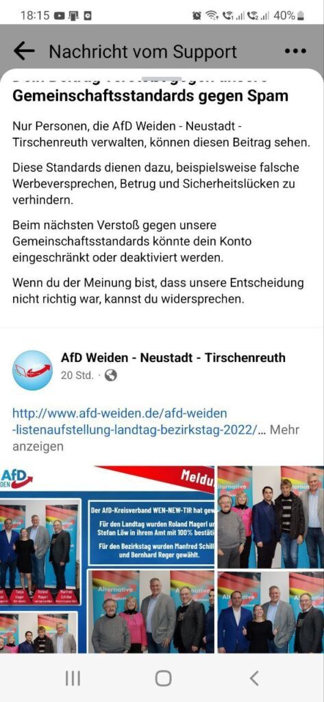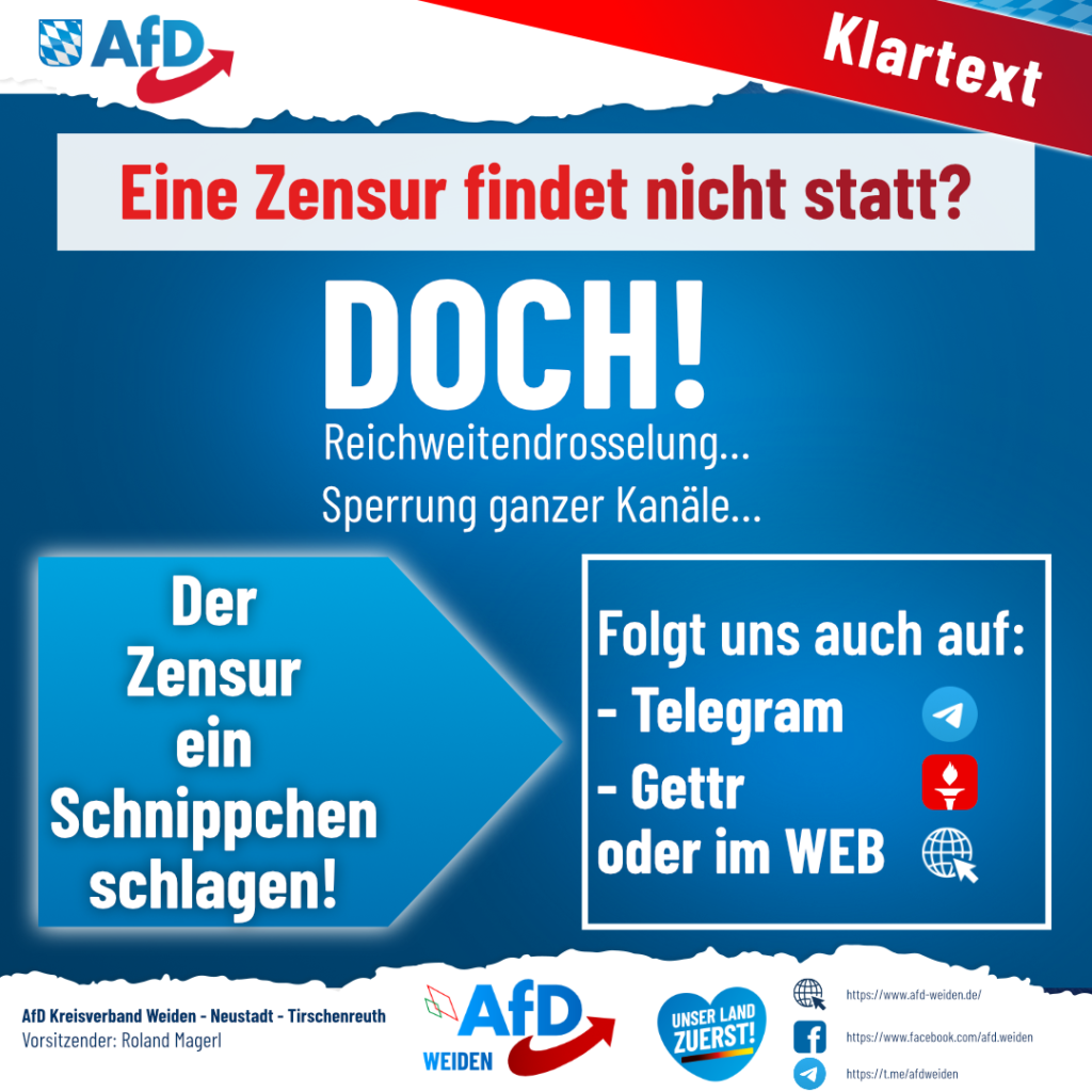 Facebook zensiert Facebook zensiert! So so, ein Beitrag einer demokratisch gewählten Partei, welcher ausschließlich den Sachverhalt zur Listenaufstellung für die Wahl im kommenden Jahr wiedergibt, verstößt nun also gegen die […]