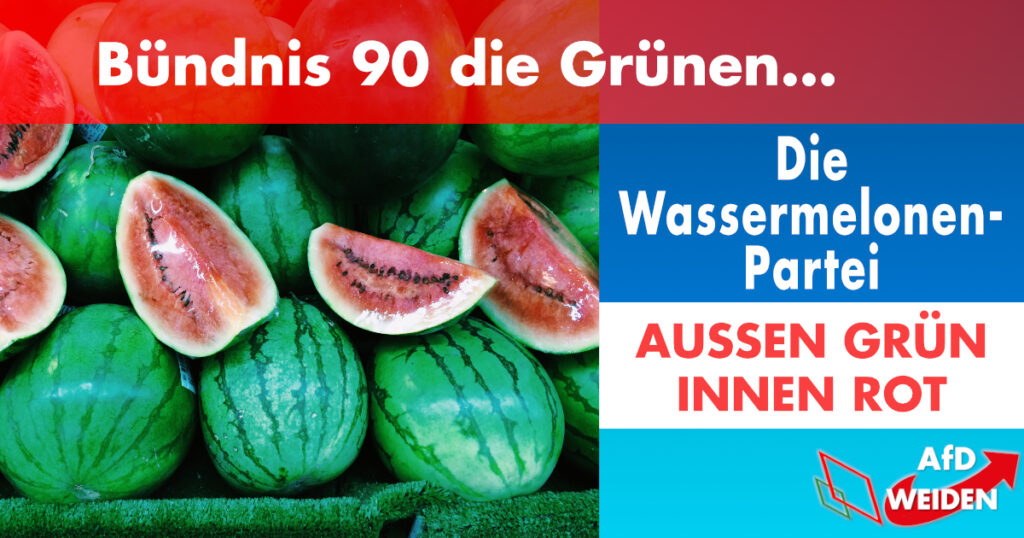 Bündnis 90 die Grünen – eine „Wassermelonen-Partei“? 🍉🍉🍉 🔴+🟢=🟤 „Den Sozialismus in seinem Lauf, halten weder Ochs noch Esel auf“ Das würde die Umfrageergebnisse hinsichtlich sozialistischen Grünen erklären. Freiheit, Selbstbestimmung, […]