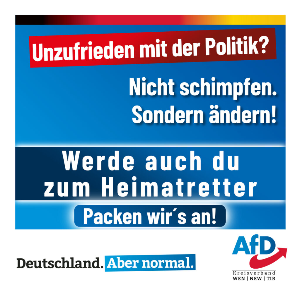 Jetzt AfD-Mitglied werden! Hier geht’s zum Aufnahmeantrag: ⬇️⬇️ https://afd-weiden.de/mitglied-werden/ 🔷🔷🔷🔷🔷🔷🔷🔷🔷🔷 🇩🇪 Beitrag bitte teilen 🇩🇪 Abonniert unseren Kanal: https://t.me/afdweiden oder tauscht euch mit gleichgesinnten aus: https://t.me/joinchat/R5Lfi5uW5CJlNDNi Oder folgt uns auch […]