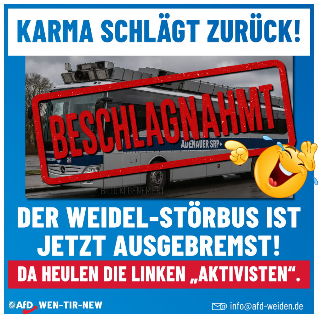 😏 Das Karma schlägt zurück! Der sogenannte „Adenauer SRP+“-Bus, mit dem linke Aktivisten noch beim ARD-Sommerinterview unsere Bundessprecherin Alice Weidel massiv gestört haben, ist jetzt selbst gestoppt worden – von […]