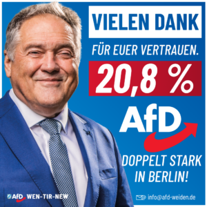 Ich bin stolz auf das, was wir erreicht haben, und danke allen Unterstützern und Wählern, die mir ihr Vertrauen geschenkt haben. Gemeinsam arbeiten wir weiter für ein starkes und selbstbestimmtes Deutschland!