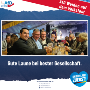 Die Stadt Weiden hat unsere Stadträte – Manfred Schiller sowie Dr. Karl Schmid – und unsere Mitglieder des Landtags – Roland Magerl und Stefan Löw – eingeladen. Natürlich sind auch wir vom AfD Kreisverband Weiden mit aufs Volksfest gegangen.