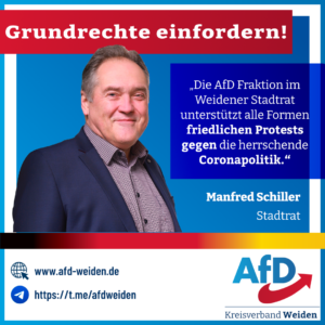 Die AfD Fraktion im Weidener Stadtrat unterstützt alle Formen friedlichen Protests gegen die herrschende Coronapolitik.