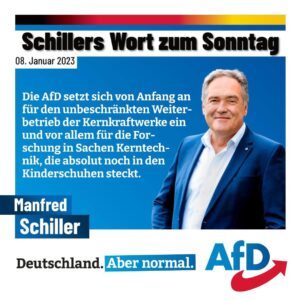 Die AfD setzt sich von Anfang an für den unbeschränkten Weiterbetrieb der Kernkraftwerke ein und vor allem für die Forschung in Sachen Kerntechnik, die absolut noch in den Kinderschuhen steckt.