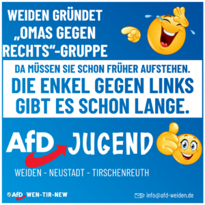 Während wir uns für die Zukunft Deutschlands einsetzen, formieren sich nun in Weiden die „Omas gegen Rechts“. Eine Rentner-Gruppe, die sich lieber mit politischen Parolen als mit ihren Enkelkindern beschäftigt! 👵📢