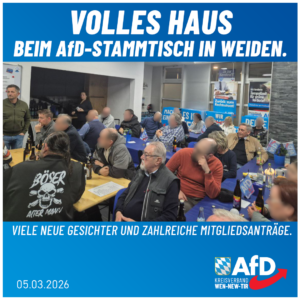 Wieder volles Haus beim AfD-Stammtisch in Weiden. 05-03-2026