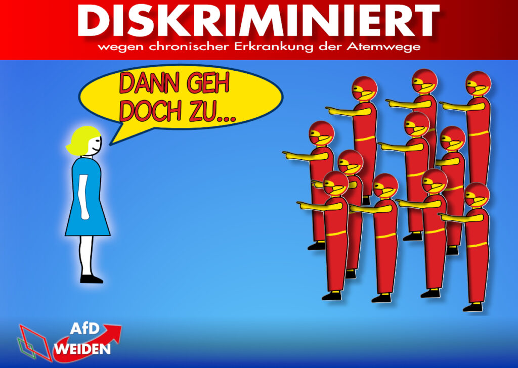 Unfassbar! Und unter aller Sau! Eine Oberpfälzer Mitbürgerin wurde aufs übelste diskriminiert. Sie durfte keine Lebensmittel kaufen. Wer dieser Tage aufgrund gesundheitlicher Gründe keine Maske tragen kann/darf muss tatsächlich schon […]