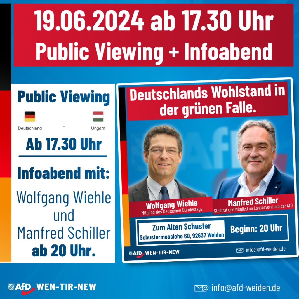 Ihr habt Fragen zur AfD? Ihr habt Fragen zur aktuellen Politik? Dann kommt zu uns. Wir sind für Euch da! Donnerstag 11.05.2023 ab 19 Uhr in Weiden Christian-Seltmann-Straße 21 im […]