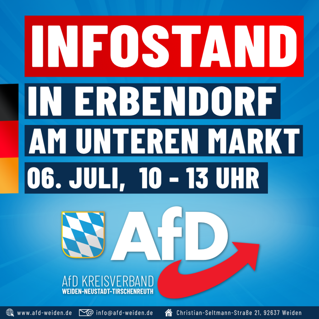 ℹ️ Infostand in Erbendorf am 06.07.2024 Am Samstag, 06.07.2024 sind wir von 10 bis 13 Uhr für euch in Erbendorf, am Unteren Markt. Kommt zu uns und informiert euch aus […]